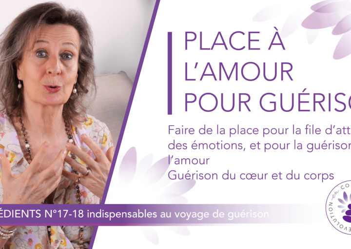 Tags Les ingrédients du voyage de guérison Chantal d'Aboville 24/08/2024 Faire de la place pour l’Amour en soi ; ingrédients 17 & 18 libérer les émotions